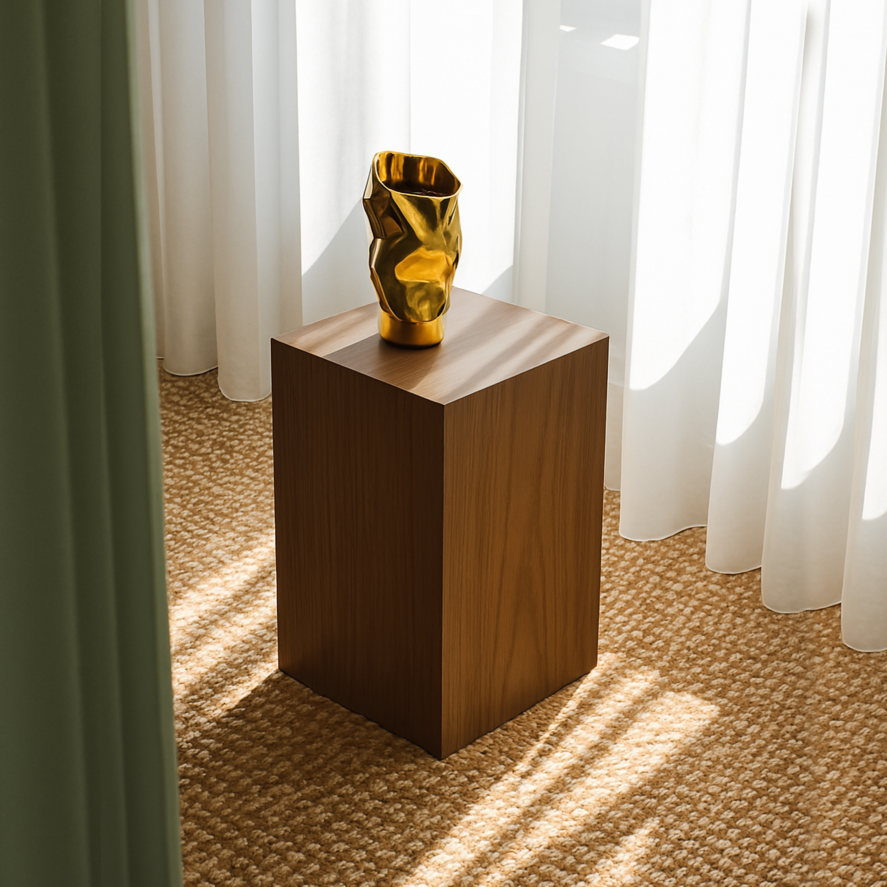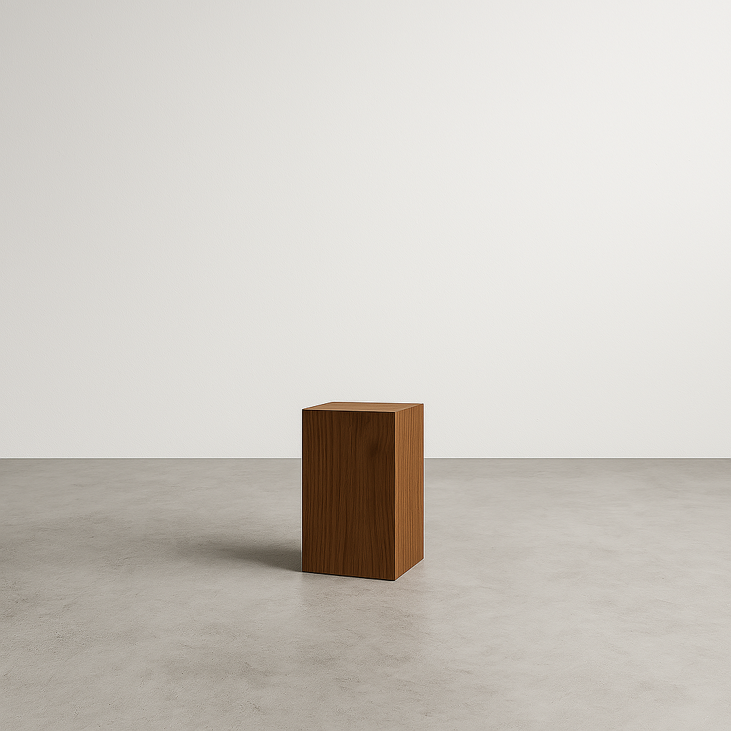 A minimalist wooden side table with a refined, rectangular silhouette and clean, uninterrupted lines.