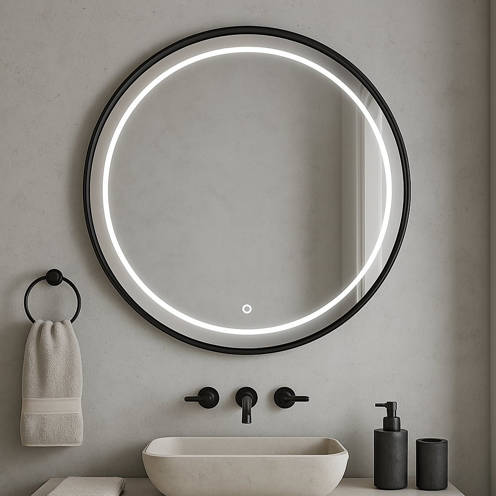 Transform your space with the Illuminated Round Mirror—a statement piece that merges artistry with innovation. Designed to elevate your surroundings, this sleek mirror features integrated LED lighting with three customizable moods—crisp white for clarity, warm white for balance, and golden glow for a touch of elegance.