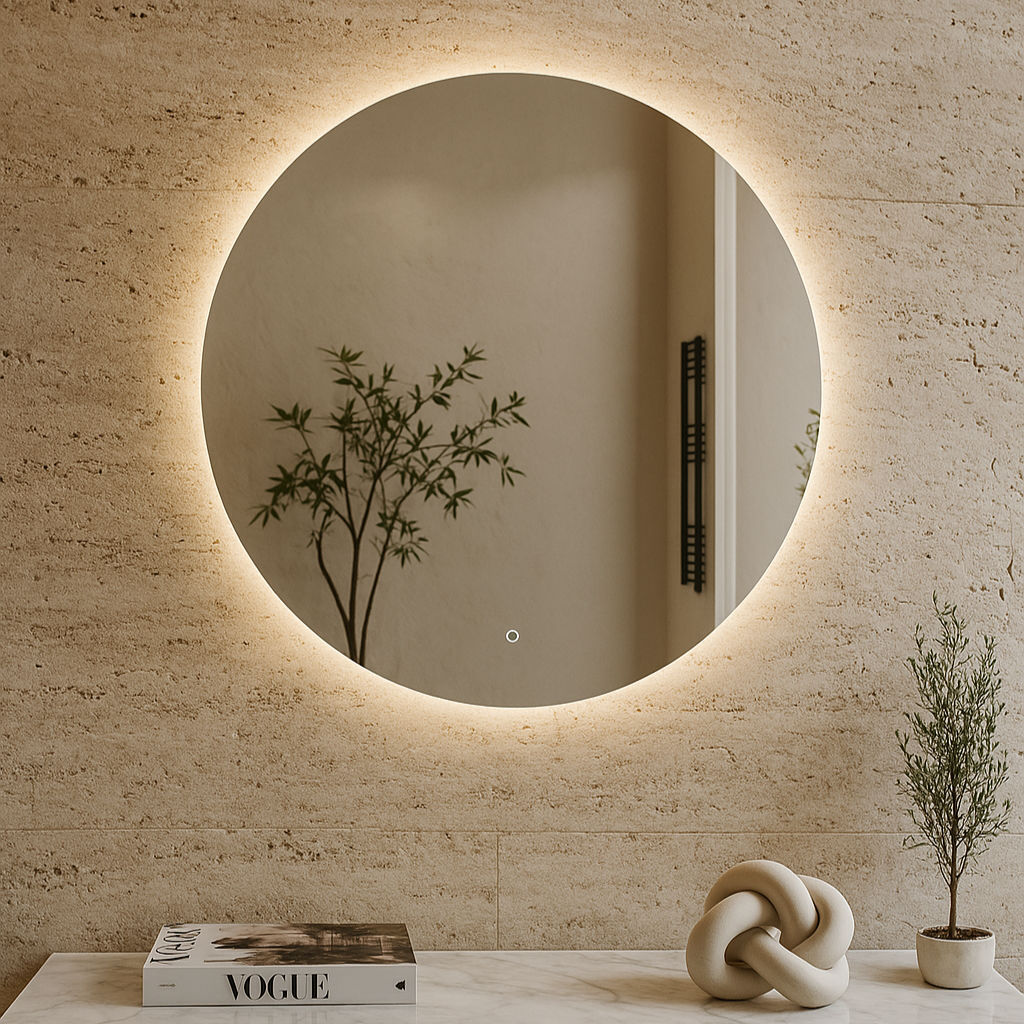 Transform your space with the Frameless Round Wall Mirror, a perfect fusion of modern elegance and smart lighting. Designed with integrated LED illumination, this mirror lets you personalize your ambiance with three adjustable light settings—white, warm white, and yellow—at the touch of a button.