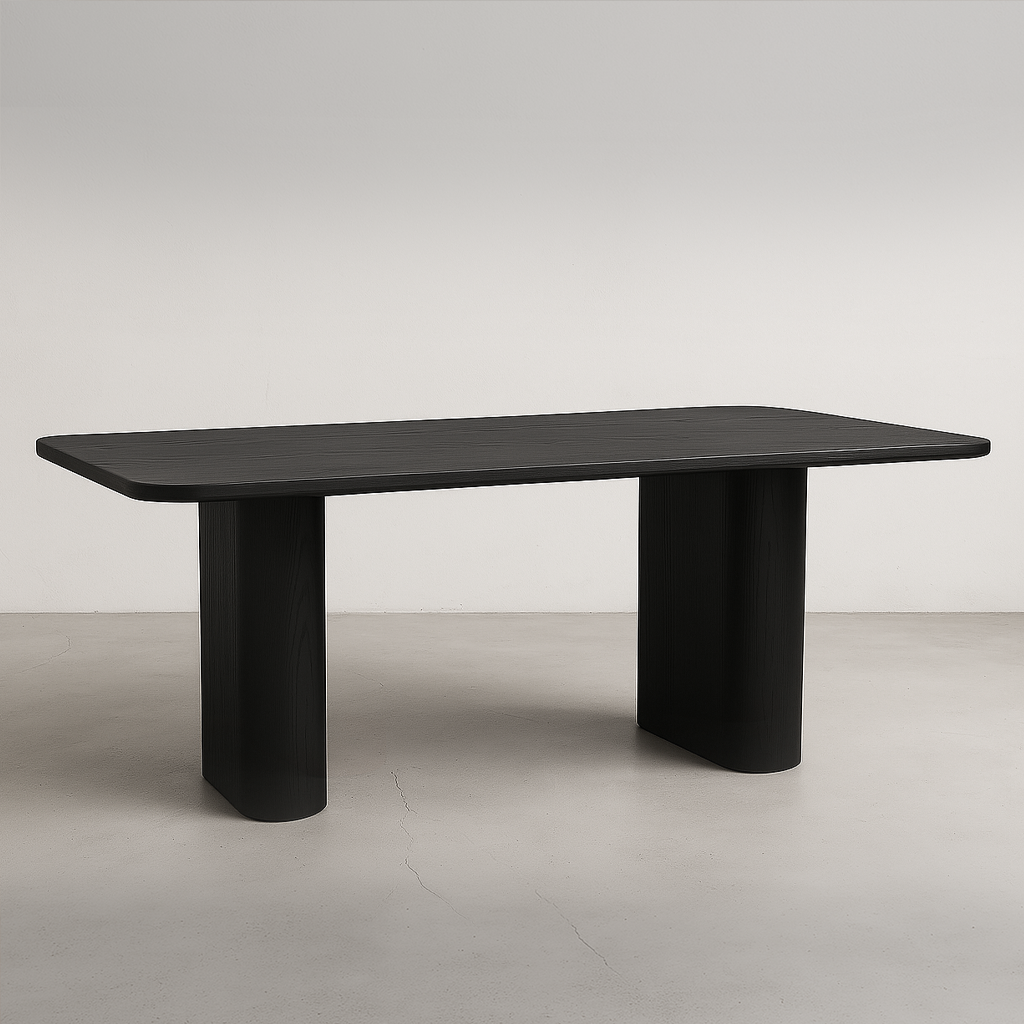 A dining table designed to elevate your everyday rituals. While its form embraces the familiar comfort of a generous rectangular top, the true charm lies in its thoughtfully reimagined base.
