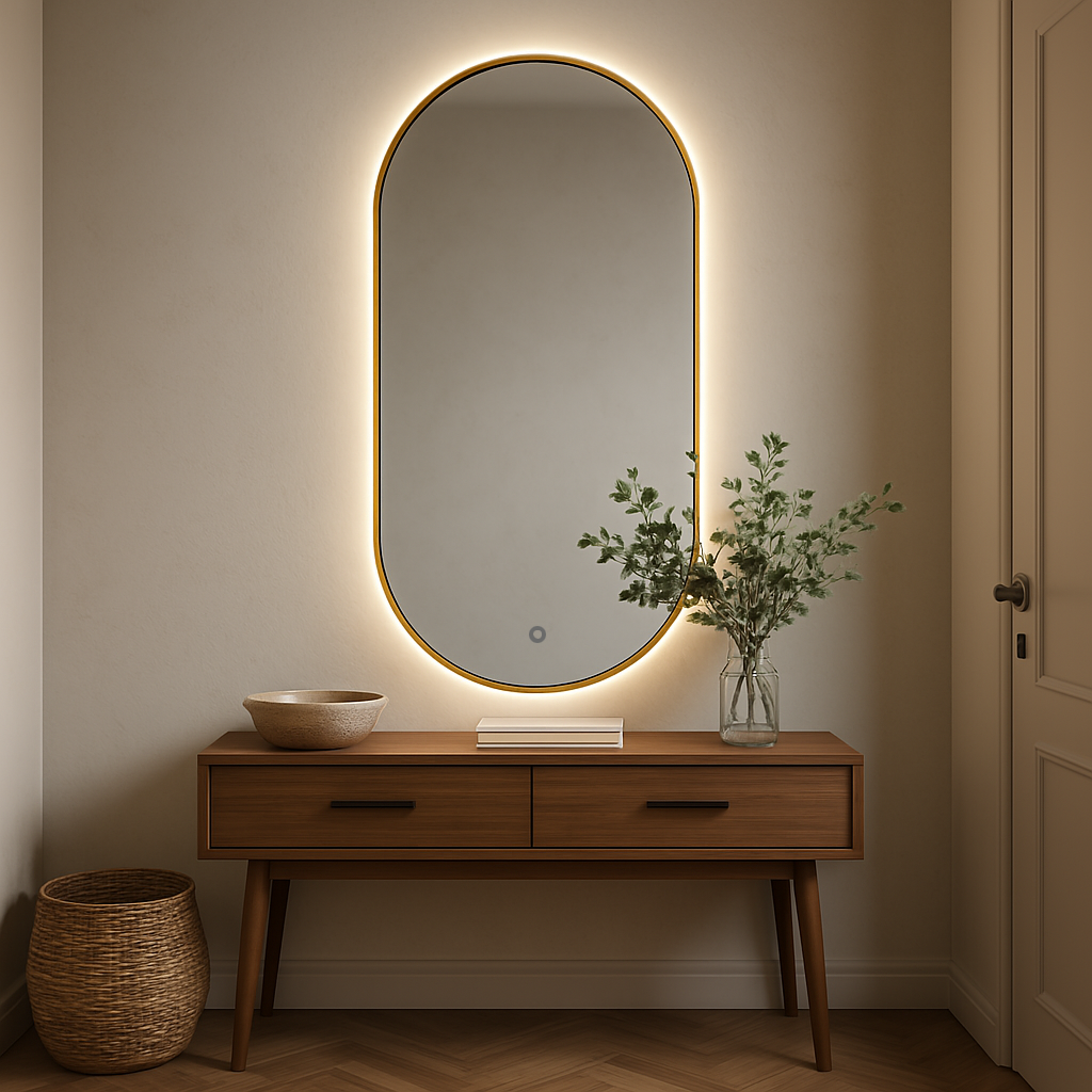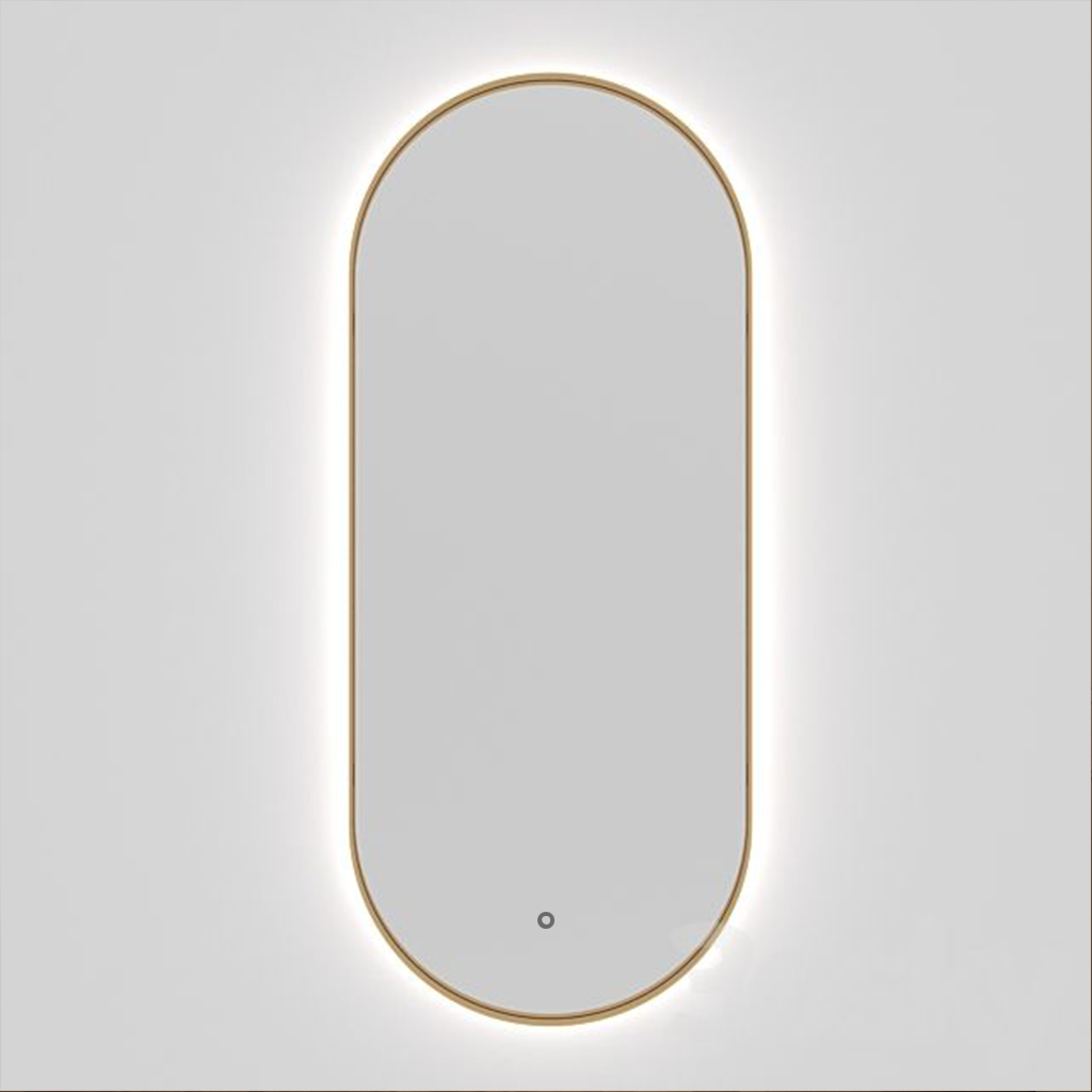 Oval Backlit Mirror | Brushed Gold Frame