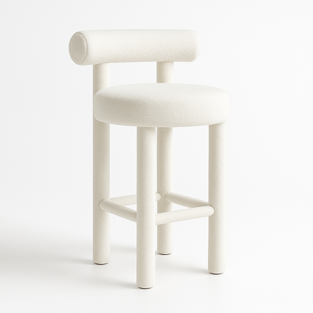 - Finish: Available in fully upholstered Boucle or black wood with Boucle