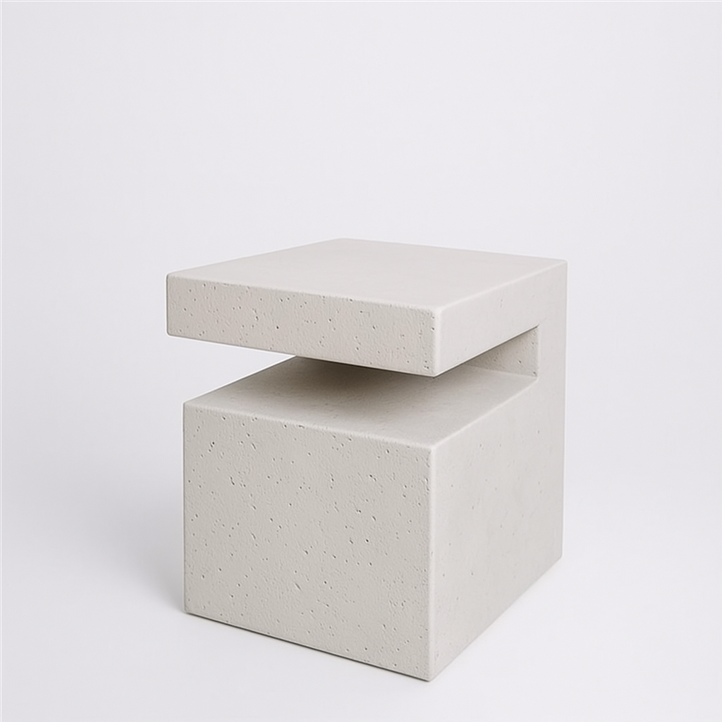 Tarn is a monolithic nightstand sculpted in textural concrete, embodying quiet strength and minimalist sophistication.