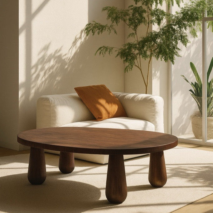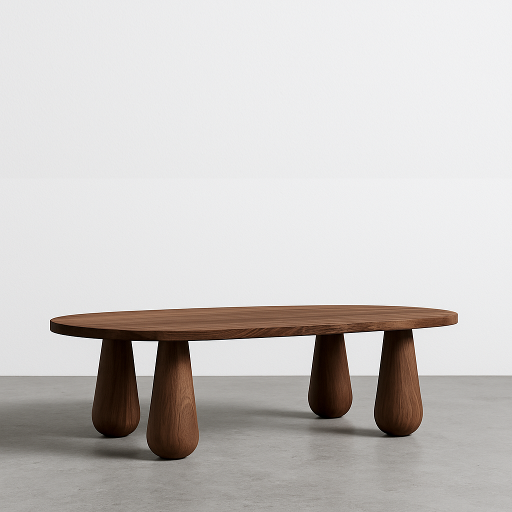 Crafted entirely from warm-toned wood, it features a smooth, round top that rests on a gently tapered, monolithic base. Its clean silhouette and seamless construction evoke a sense of calm and balance, making it a versatile accent piece for contemporary, Japandi, or quiet luxury interiors.