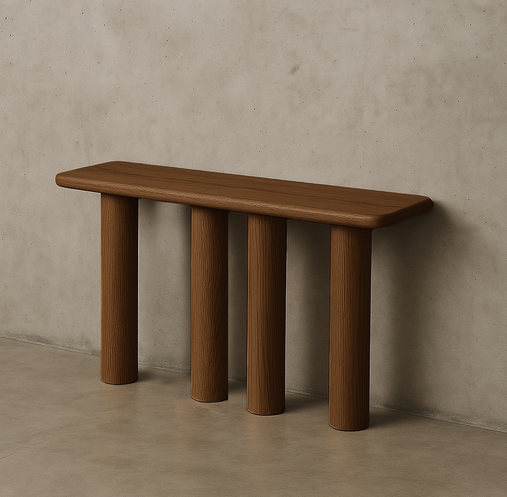A bold yet balanced presence, the Erika Console stands with quiet confidence. Its cylindrical legs and softened rectangular top create a striking silhouette—minimal, modern, and effortlessly versatile. Ideal for spaces that call for calm simplicity.