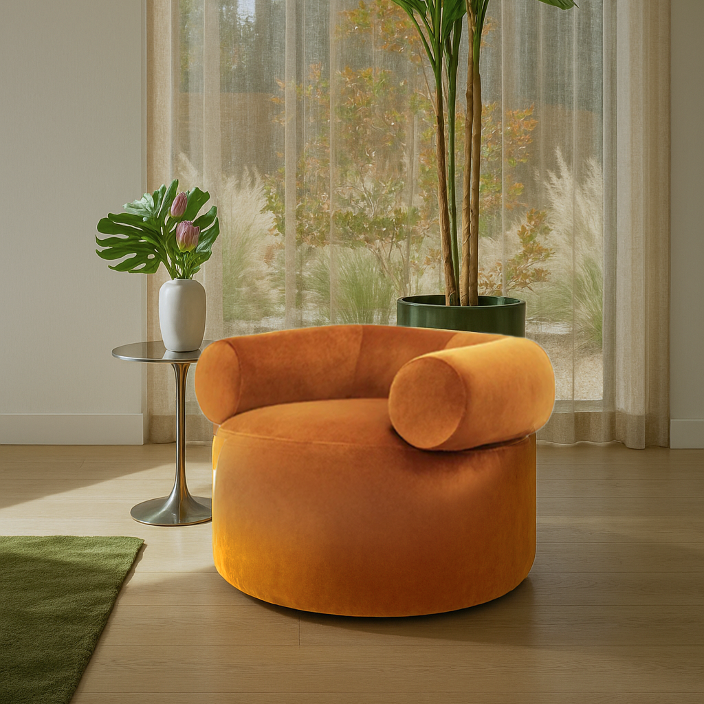 A bold, sculptural elegance with its cylindrical silhouette and rounded contours.