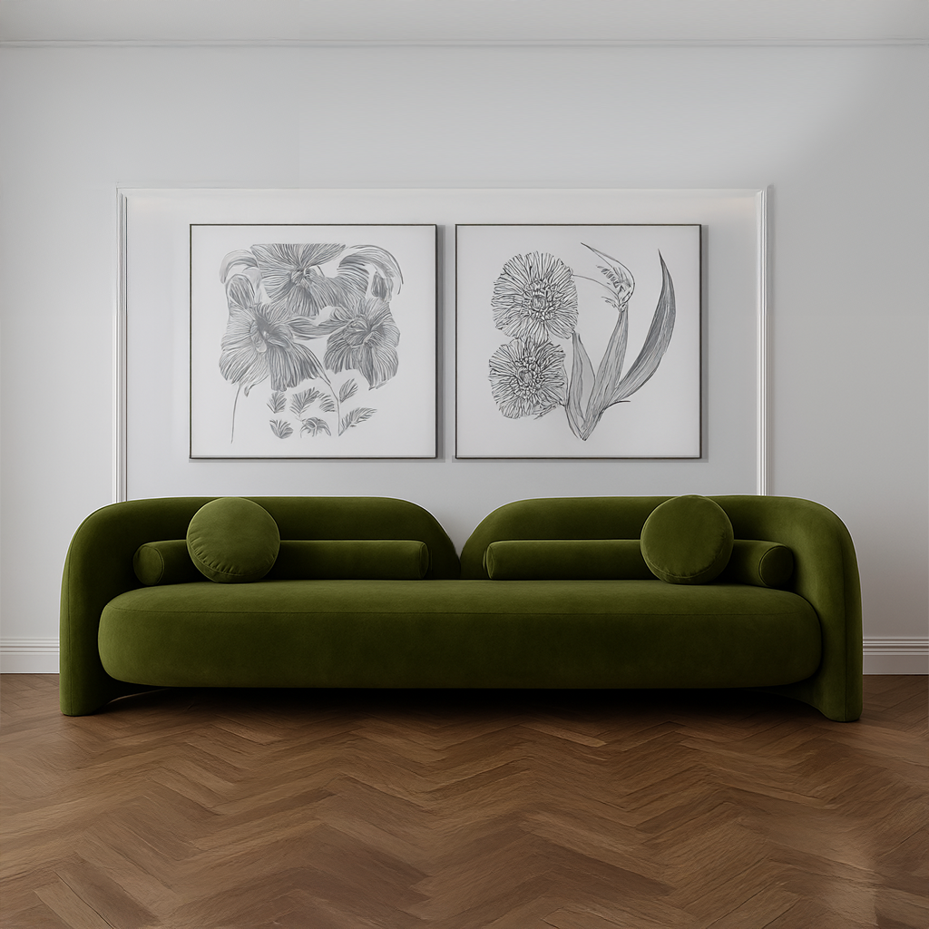 Ideal addition to any modern, minimalist space. Designed for two and made for slow mornings or late-night chats. Wrapped in soft suede fabric, it adds gentle texture and a bohemian touch to your room.