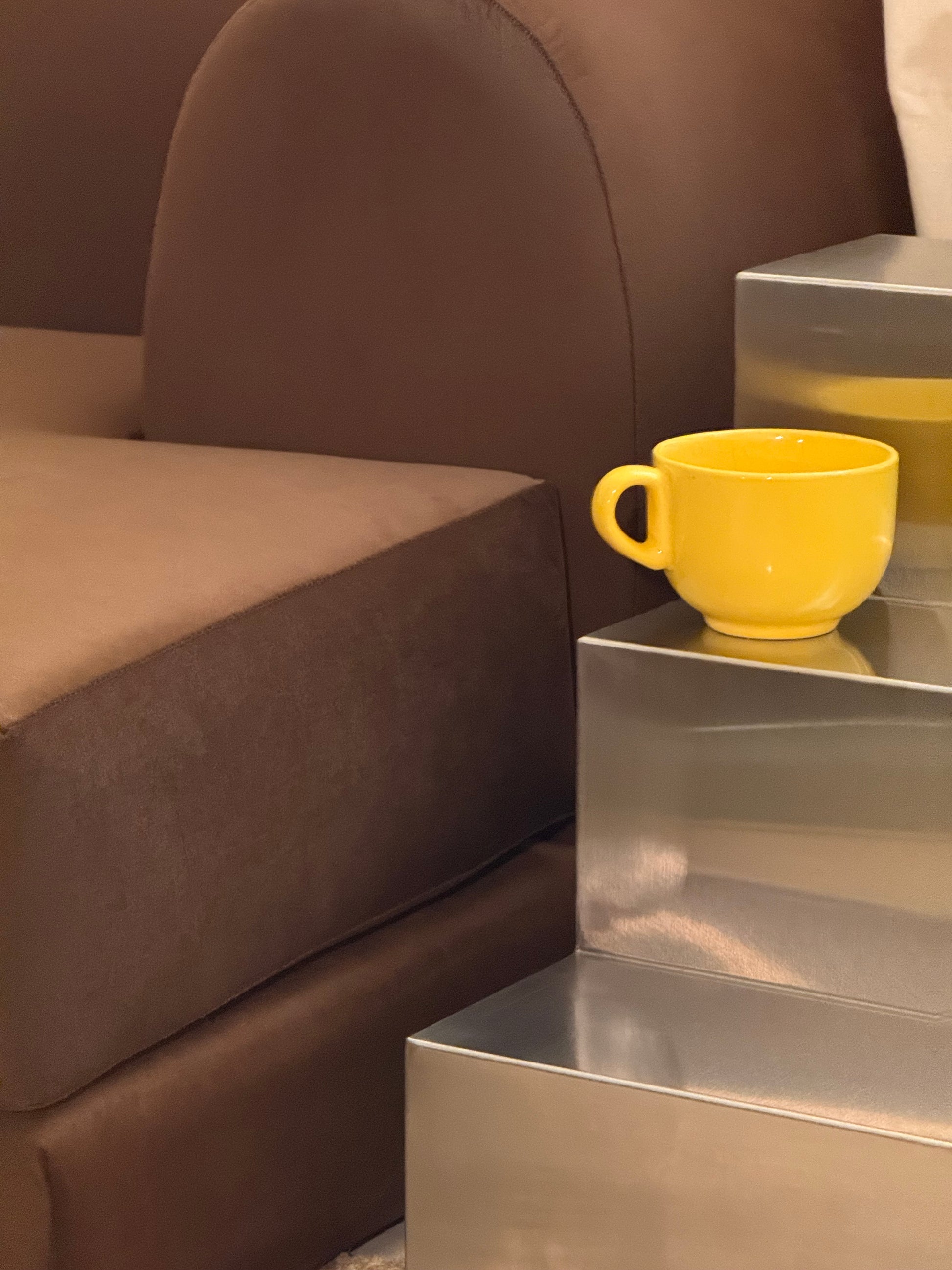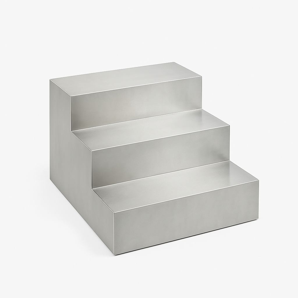 Crafted from brushed stainless steel, the Stepline Night Stand features a tiered silhouette reminiscent of a sculptural staircase.
